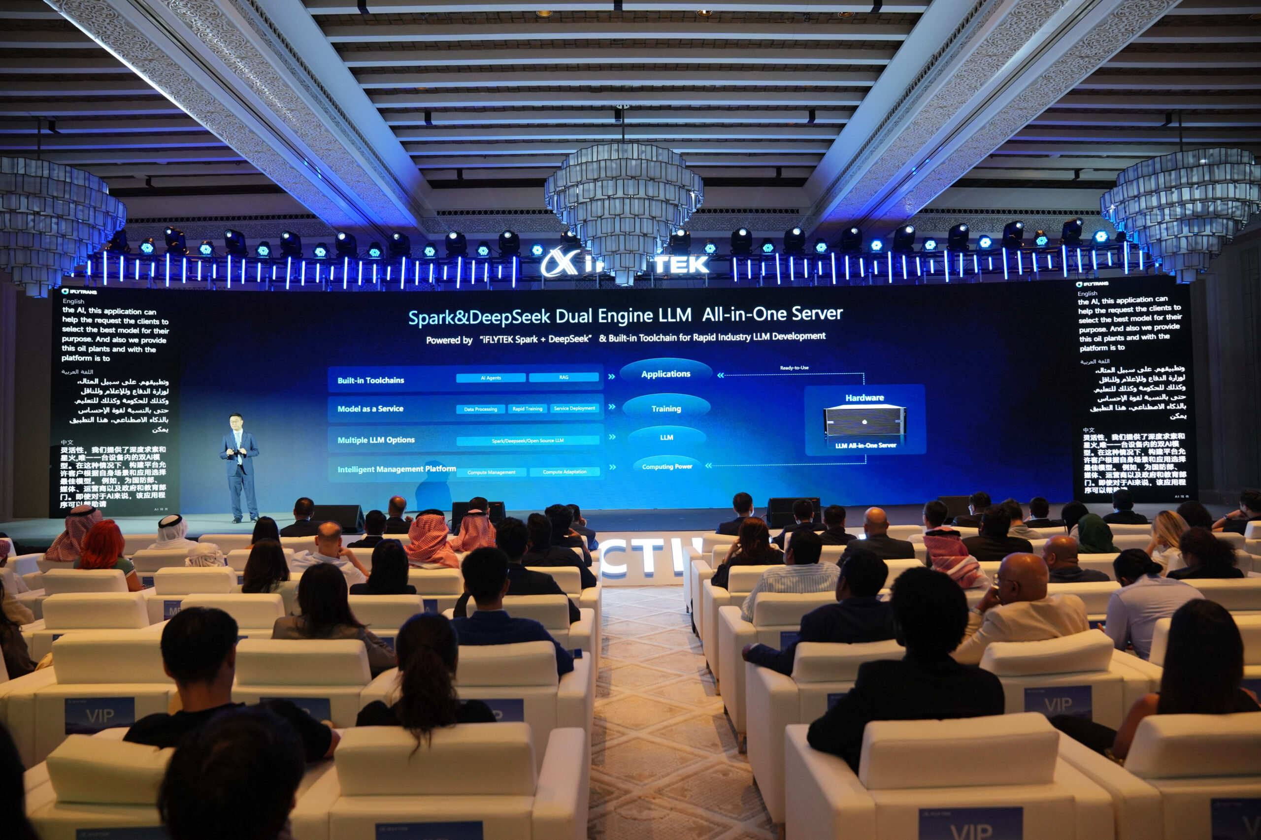 The launch opened with iFLYTEK’s AI virtual host Aliya, setting the tone for innovation and connection. Followed by Vice President Vincent Zhan’s speech, reaffirmed iFLYTEK’s long-term commitment to the Middle East’s digital transformation through localised innovation and intelligent solutions.